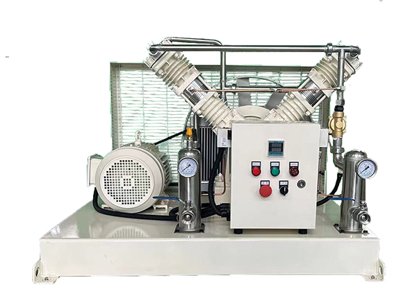 全無油設(shè)計,導(dǎo)向環(huán)、活塞環(huán)、活塞桿填料均采用自潤滑材料,無油潤滑。軸承部件采用耐高溫脂潤滑,不與壓縮介質(zhì)接觸,避免壓縮過程中對氣體的污染,保證氣體純度。根據(jù)實際用氣情況,壓縮機分為單級或多級壓縮;結(jié)構(gòu)形式分為單缸、雙缸、三缸、四缸及組合式多缸結(jié)構(gòu);冷卻方式分為風冷和水冷。